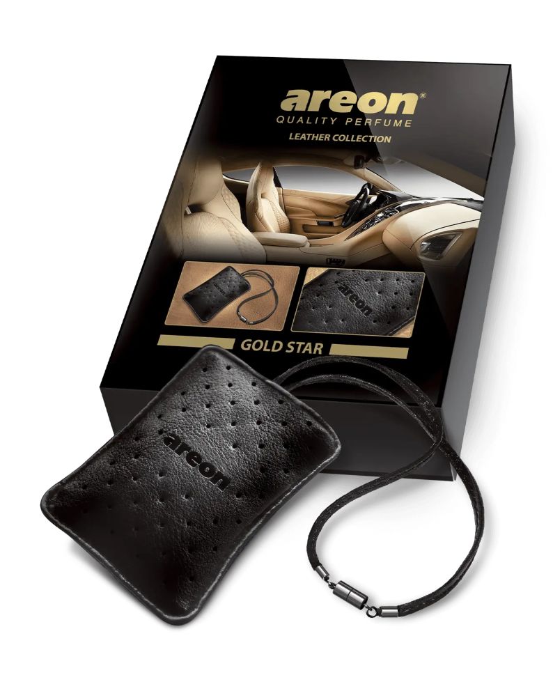Gold Star е стилен ароматизатор за кола във вид на елегантна кожена торбичка, пълна с ароматни вулканични камъни. Той съчетава практичност и лукс, превръщайки всеки автомобил в пространство на комфорт и стил.